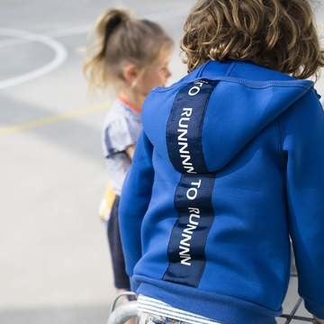 Got the blues? Niet in dit hoodie vest. Hierin voelen alle jongens zich top. Komt niet alleen door het soepelvallende materiaal - met een vleugje scuba (duikstof) - maar ook door de steekzakken, geribde boorden en de coole doorlopende To Runnn-bies op de rug. Het blauw past bij alle joggs, jeans en printed shirts, dus deze mag meteen op de favorietenstapel. Tumble 'N Dry cool guys' choice!