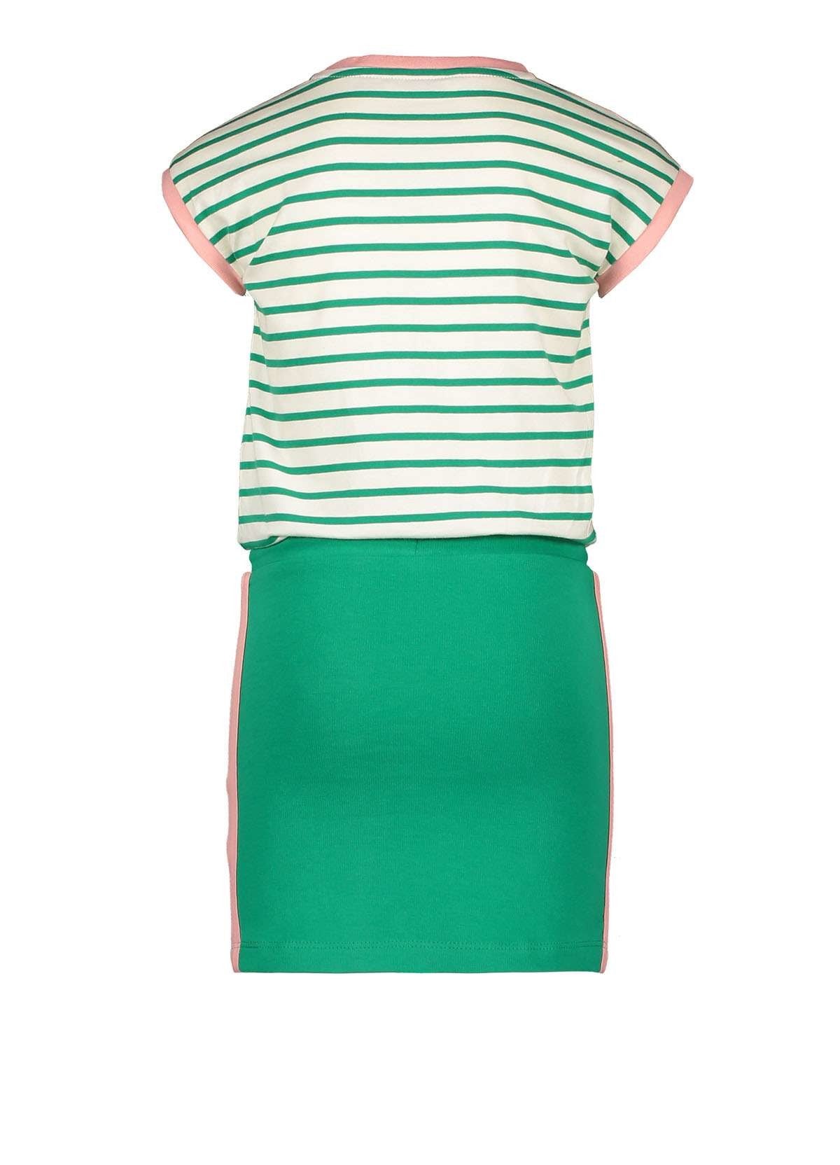 Moodstreet jurk voor meisjes met korte mouwen in de kleur groen. Deze jurk is gemaakt van katoen met elastan. Het item is voorzien van een elastische tailleband met tunnelkoord en heeft een contrastkleurige bies op de zijnaad. Bovendien heeft de voorkant een opdruk met de letter M en heeft de bovenkant een streepjespatroon. Maak je outfit helemaal af met de kniekousen van Moodstreet. Musthave alert!
