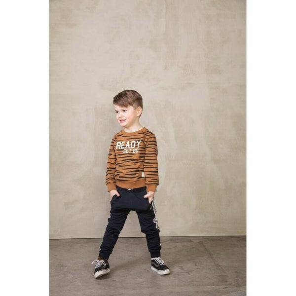 Ready Set Go! Is jouw hartendief klaar voor deze stoere sweater? Combineer met een leuke sweatpants of jeans en ga heerlijk het najaar in.