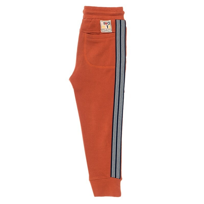 Deze roestbruine sweatpants met zwart/wit gestreepte bies op de zijkant is helemaal van dit seizoen! De broek heeft een verstelbaar koord in de taille en is voorzien van broekzakken.