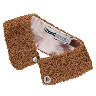 Moodstreet kraagje voor meisjes in de kleur bruin. Dit kraagje, uitgevoerd in een teddy kwaliteit is gemaakt van 100% polyester. Het model sluit met een knoopje en is gevoerd met een gladde polyester. Draag 'm op een Moodstreet sweater om je eigen, unieke look te creëren!