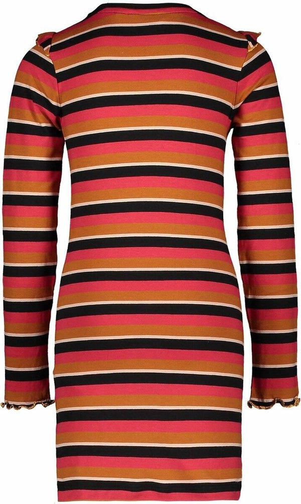 Een echte musthave voor jouw hartendief! Een comfortabel en makkelijk jurkje van Moodstreet. De kleuren zijn: rood, zwart, roest en oudroze. Het jurkje heeft een ruffle op de borst in een V-vorm. Een zwarte legging of maillot eronder en je bent klaar voor het najaar.