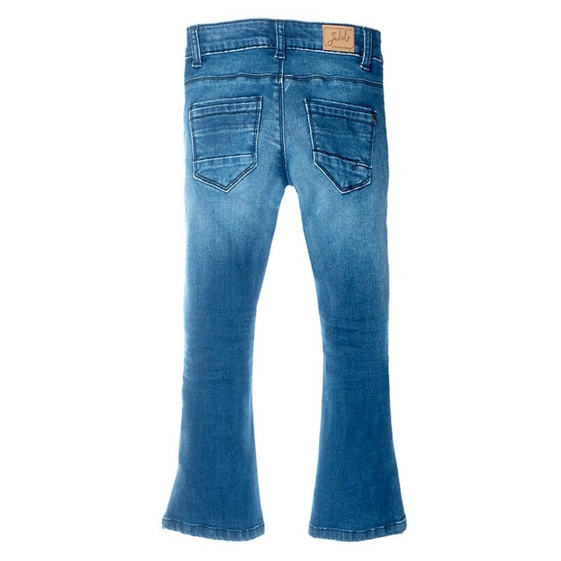 Stoere flared jeans van Jubel met uitlopende broekspijp. De broek heeft verstelbaar elastiek in de tailleband en een used-look wassingDe jeans heeft stretch in de stof, dus heerlijk comfy!