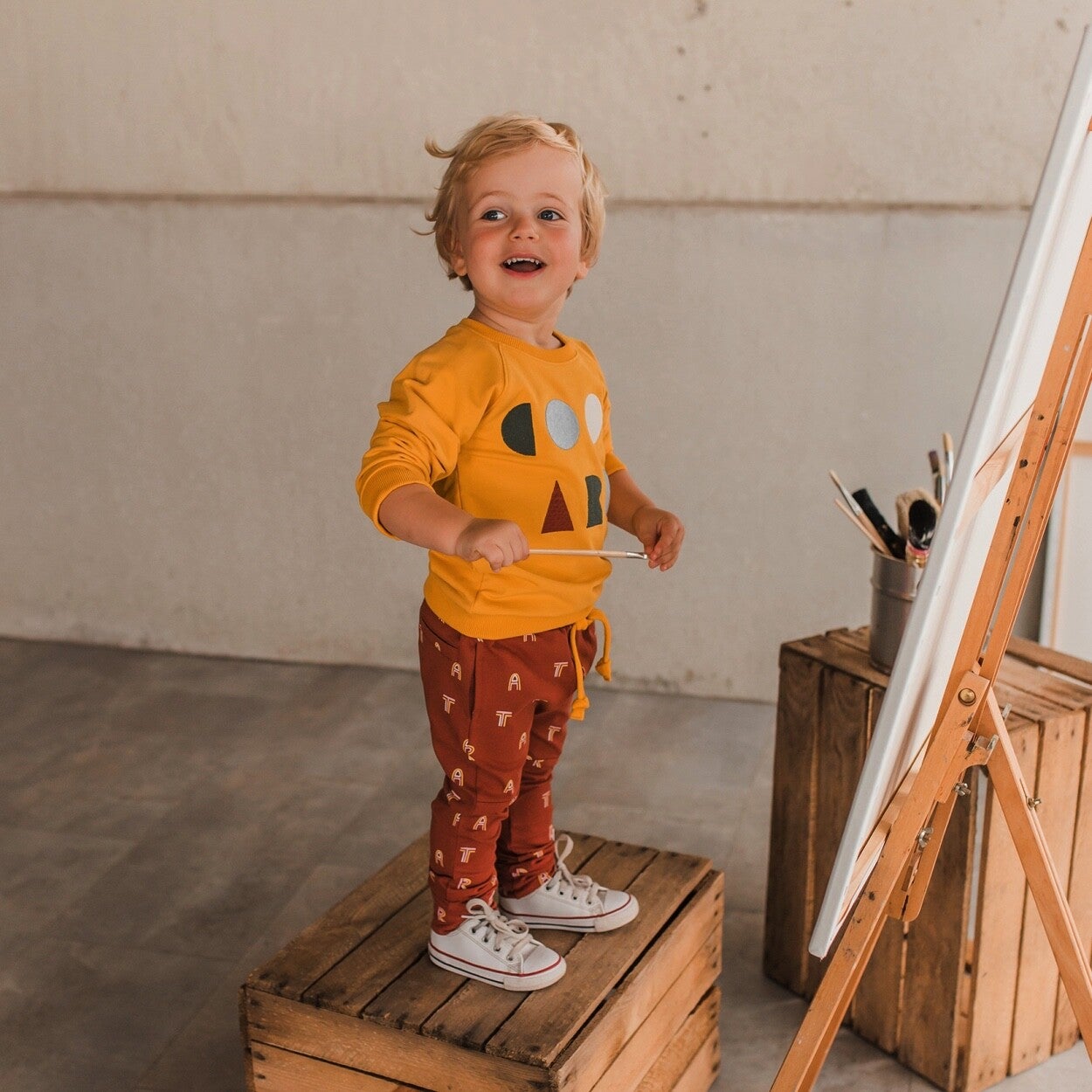 In deze toffe multicolor letterprint komen de kleuren van de wintercollectie mooi samen. De letters spellen het woord A-r-t… ART! Onze joggings hebben een verlaagd kruis en zijn voorzien van een koord in de tailleband. Een stoer model met een slanke fit die je kan verstellen naar wens. Een jogging zit tussen een legging en baggy broekje in. De Seam jogging is voorzien van steekzakken en stoere naden op de knie.