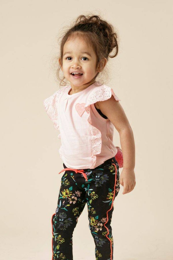 Hello cutie! Je wordt toch meteen verliefd op deze schattige roze top met ruches van broderie? Mooi te combineren met de andere items uit de Beebielove collectie.