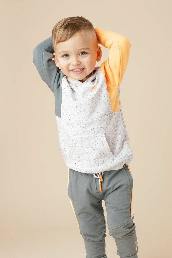 Perfect in het voorjaar of op een wat koelere zomeravond! Deze grijs gemêleerde hoodie valt op door de verschillende vrolijke kleuren oranje en groen en kan hierdoor zeker in de zomer gedragen worden.