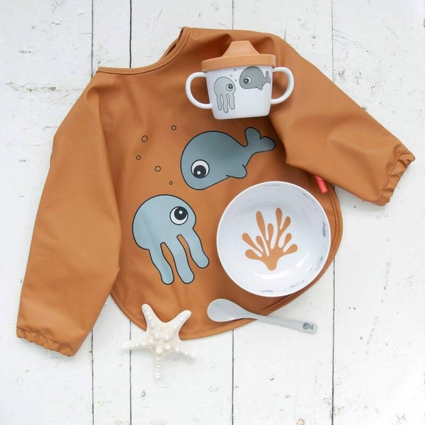 Het Sea Friends slabbetje is waterdicht met praktische elastische mouwen en een klittenbandsluiting. Het is gemakkelijk schoon te vegen of te wassen in de wasmachine.
