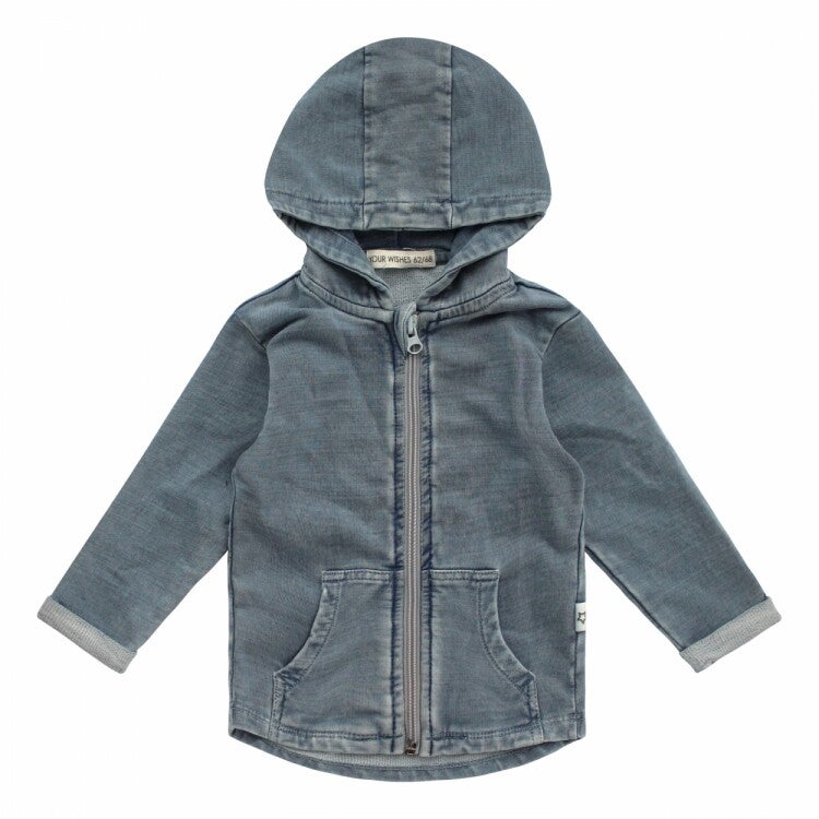 Knitted Denim in light blue! Een comfortabel item en easy to match. De stoere Zipper Pocket Cardigan is een capuchonvest met ritssluiting en zakken aan de voorkant.