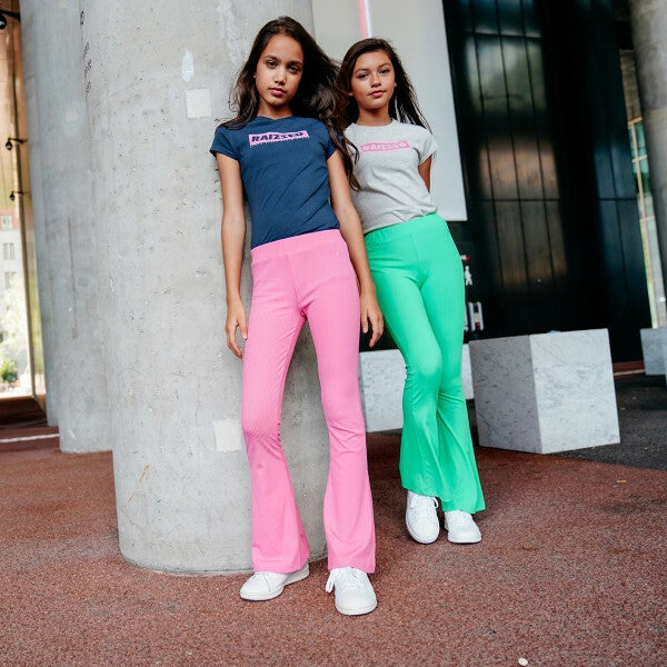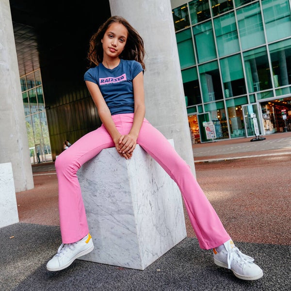 Helemaal hip met deze superstoere flared legging van Raizzed. Combineer met de bijpassende top van Raizzed in blauw met roze opdruk, of juist met de matching top in dezelfde stof.