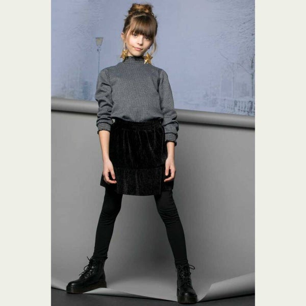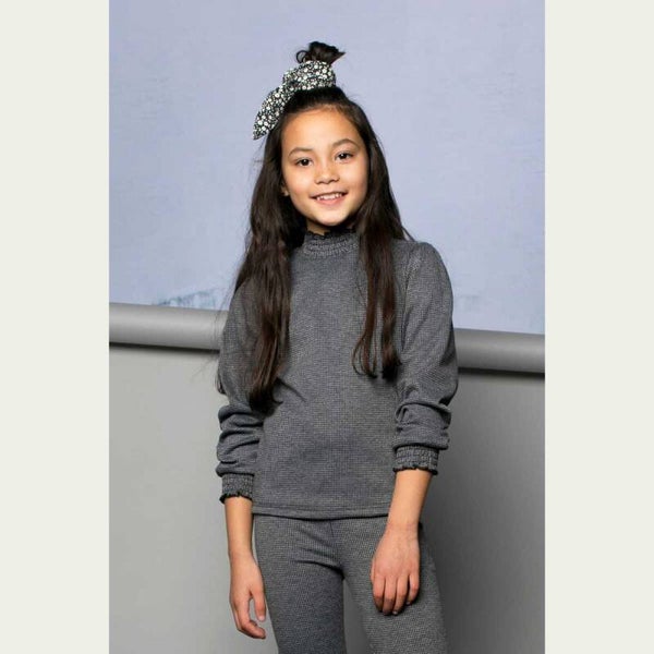 Dit fancy shirt heeft het echte wauw-effect, door de mooie pasvorm en het stretchy zachte tweed-look stofje in een stoere grijstoon. Als tweedelig suit te combineren met de flared broek in dezelfde stof. Zo superhip en een leuke Moodstreet look ;-)