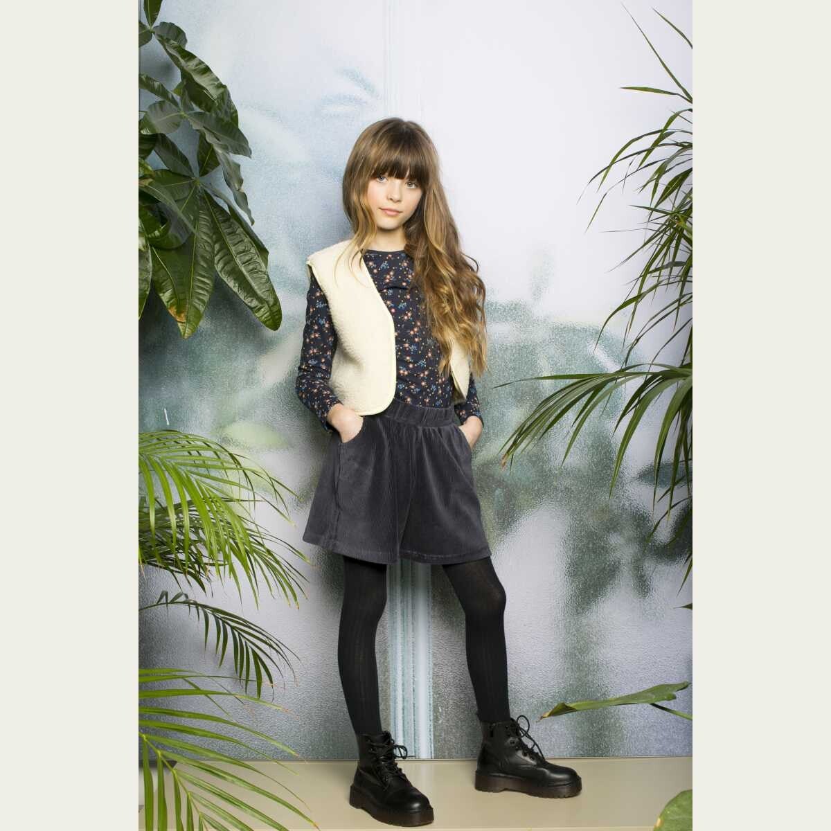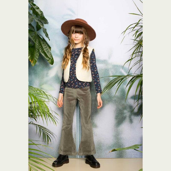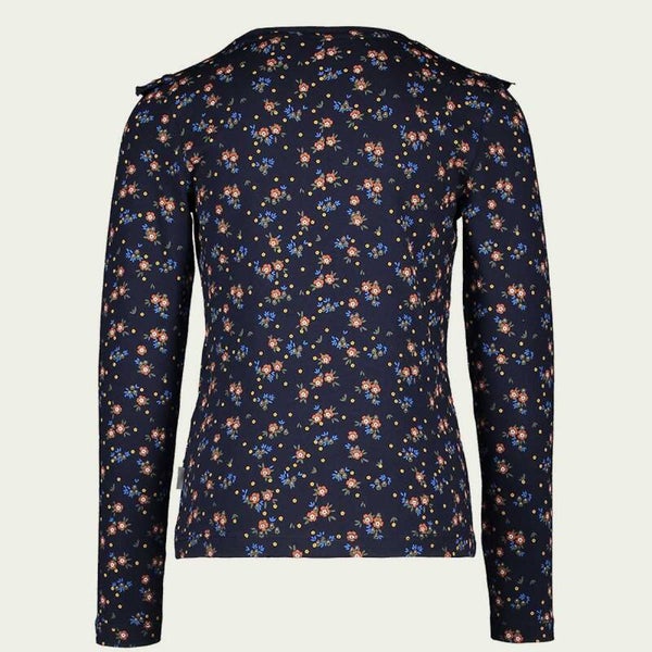 Voor hippe flower girls, dit navy Moodstreet longsleeve shirtje met flower allover dessin en een leuke ruffle over de borst. Leuk te combineren met het mosgroene fake leather rokje van Moodstreet!