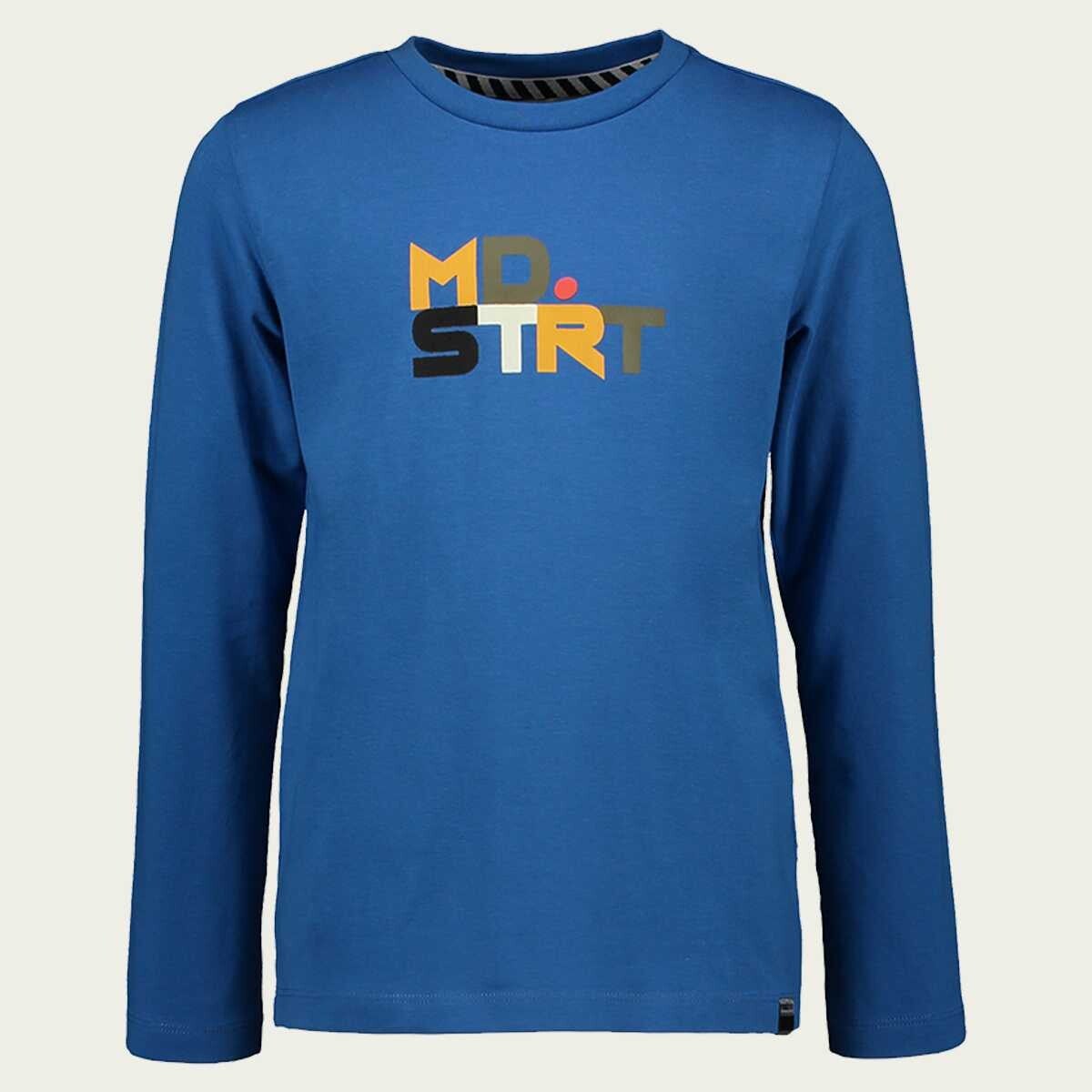 Moodstreets basic longsleeve heeft een goede fit door de fijne elastan. Deze stoere blauw heeft een meerkleurige grafische print op de voorkant.