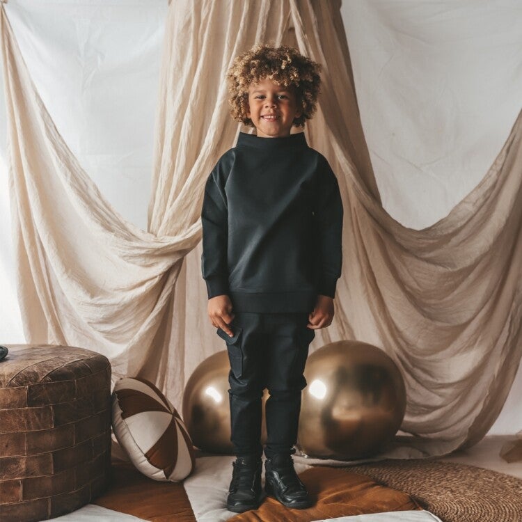 Dit effen broekje is voorzien van grote klepzakken aan beide kanten. Een stoer model die je kan verstellen naar wens door middel van een koord in de tailleband.