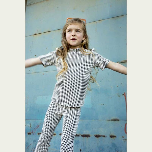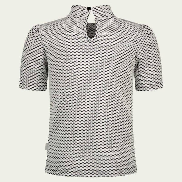 Heerlijk zacht deze fijne Moodstreet top in een zwart / warm white ruitje. Een makkelijke knoopsluiting aan de achterkant van het colletje. Super te combineren met de flared broek in dezelfde stof en print.
