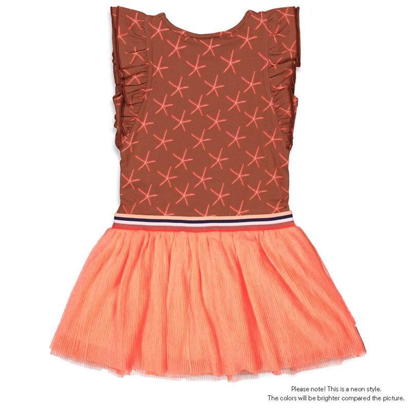 Jubel | Dress Ruffle Plissé Brown/Neon Coral - Mermaid Mambo